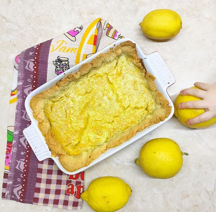 ИНГРЕДИЕНТЫ: Лимон - 2 шт. Яйцо куриное - 5 шт. Масло сливочное - 100 г Мука пшеничная - 1,5-1,7 стакана Сахар - 1,5 стакана Соль - 2 щепотки. . ✅ Лимоны ошпарьте кипятком. ✅ смешайте размягченное сливочное масло, муку, одно куриное яйцо и треть стакана сахара, соль. ✅ Замесите песочное тесто, накройте пищевой пленкой и поместите в холодильник на 15 минут. ✅ натрите с лимонов цедру, затем выжмите из цитрусовых сок. ✅ разбейте оставшиеся куриные яйца, влейте лимонный сок, всыпьте цедру и сахар. Очень тщательно размешайте, пока весь сахар не растворится. ✅ Достаньте тесто из холодильника, распределите его руками по форме, смазанной маслом. ✅ Влейте яично-лимонную начинку и поместите форму в разогретый до 200 С духовой шкаф на 25-30 минут. ✅ Как только края теста и начинка хорошо пропекутся, извлеките пирог из духовки и дайте ему остыть. Затем - из формы и поместите его в холодильник. ( у нас до холодильника пирог не дождался😁) Будете готовить?😁