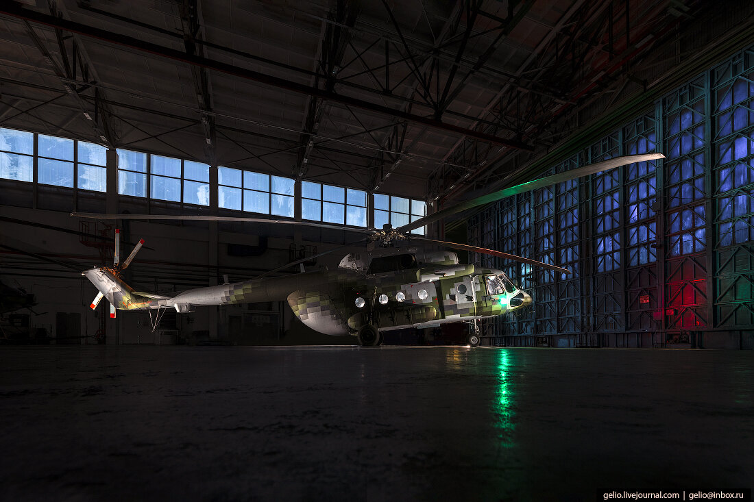 28. Цех окончательной сборки, где металлическая махина превращается в жизнеспособный летательный аппарат. Именно здесь вертолёт получает своё «сердце» — мотор. Здесь же происходят монтаж трансмиссии и электрооборудования, установка топливной и гидравлической систем, настройка бортовой электроники.