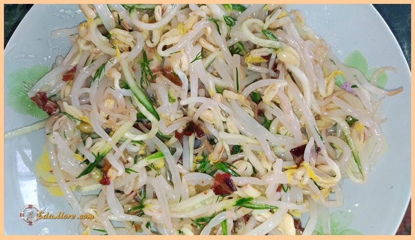 Дорогие друзья! Вы решили похудеть? Но, при этом не хотите голодать и садиться на диету? Все очень просто! Главное знать, что можно есть и при этом не набирать лишние килограммы, а то и терять уже набранные. Такой продукт есть! Это всем известная СОЯ. Чтобы восполнить нехватку витаминов группы В, необязательно бежать в аптеку за БАДами. В сое содержится чуть ли не вся линейка витаминов, железо, кальций, калий и прочие микро- и макроэлементы, и аминокислоты. Не зря жители азиатско-тихоокеанского региона уже давно сою ставят во главу стола. Ведь из нее можно приготовить практически любое блюдо – молоко, мясо, сыр, лапшу, масло и др. Но, сегодня нас интересует пророщенная соя, ибо это самая полезная форма этого растения. И мы приготовим салат, который можно есть несколько раз в неделю. ▪▪▪▪▫▫▫ Нам потребуются: 🔹 Соя пророщенная – 1 пакет (примерно, 300-400 граммво), 🔹 Свежий огурец среднего размера – 1 штука, 🔹 Чеснок – пару небольших зубчиков, 🔹 Сахар-песок – 1 столовая ложк
