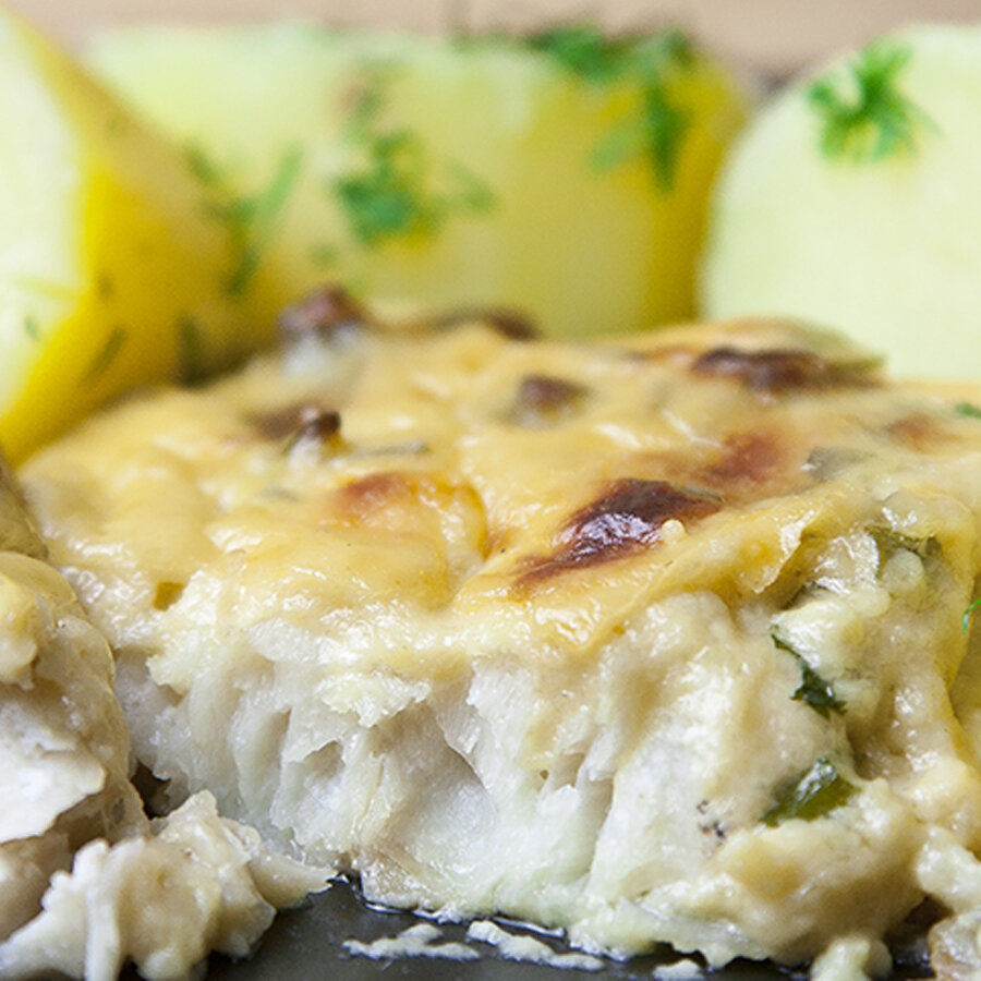 Для приготовления потребуются: Заходите на мой сайт и читайте ещё больше новых рецептов Способ приготовления: Рыбу выпотрошить, промыть от слизи. Голову и хвост отрезать. Тушку порезать на порционные кусочки. Посолить и перемешать. Лук почистить и порезать полукольца. Зелень порубить мелко. Сыр нужно натереть на крупной терке. Противень застелить фольгой, формируя бортики. Выложить на фольгу кусочки сома, затем лук. Залить сливками и посыпать тертым сыром. Закрыть рыбу фольгой со всех сторон и отправить блюдо в разогретую духовку до 200 градусов. Запекать в течение 40 минут. За 10 минут до готовности открыть фольгу, посыпать порубленной зеленью. Готовую рыбу с заливкой из сливок и сыра выложить на тарелку и можно подавать на стол. ПРИЯТНОГО АППЕТИТА! Если Вам понравилась статья, ставьте лайк и подписывайтесь на мой канал в Яндекс.Дзен!