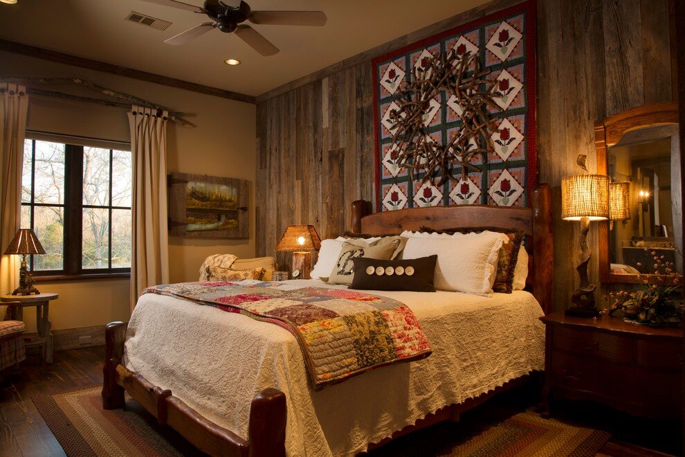 2. Спальня в стиле кантри отдает предпочтению отделке из дерева