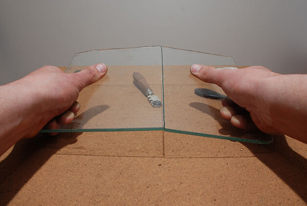 В хозяйстве довольно часто возникает необходимость нарезать стекло. Дело это не сложное. Но необходим навык и некоторые знания. О них и пойдет речь. Стекло режется на гладкой ровной поверхности. В домашних условиях для этого дела хорошо подходит стол, который можно застелить бумагой – к примеру, старыми обоями или старой чистой простыней. Стекло лучше протереть влажной тряпкой и высушить. После стекло размечается. Для нанесения линий подойдет тонкий маркер, предназначенный для надписывания компакт-дисков. После разметку легко смыть моющим средством или тряпочкой, смоченной в ацетоне. Чтобы разрезать стекло так, чтобы результат получился не хуже, чем в мастерских, где выполняется резка стекол на заказ для производства мебели и других целей, в домашних условиях лучше разметить стекло при помощи длинной ровной рейки. Чтобы рейка не скользила по стеклу, на одну из ее сторон можно приклеить кусочки тонкой резины. Это может быть резина от камеры велосипеда или эластичного жгута