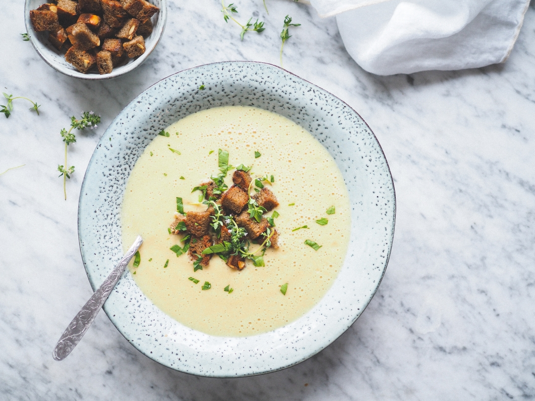 Затем я перенес содержимое горшка в блендер и смешал его в мягкую консистенцию. Затем я добавил молоко по мере необходимости. Это зависит от того, предпочитаете ли вы более плотную или жидкую консистенцию. Наконец, попробуйте суп и, если необходимо, приправьте его солью и перцем.