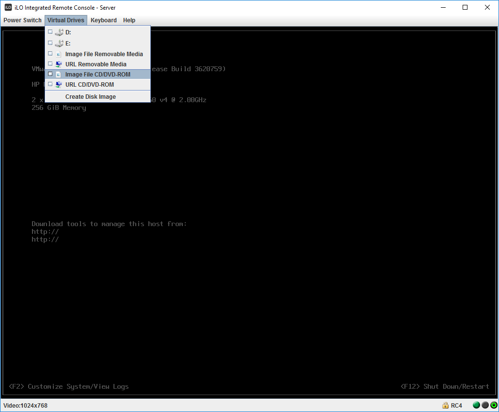 KVM отваливается, т.к. для установки BIOS требуется перезагрузка, iLO
