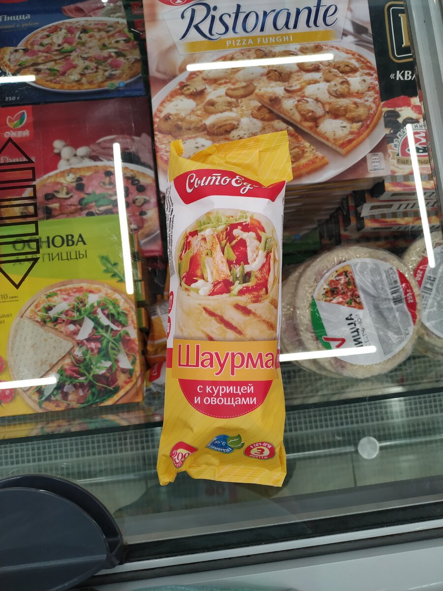 Иногда проходя возле прилавка с замороженными продуктами, всегда хочется верить что ты найдешь что-то вкусное.. Что будет напоминать тебе домашнюю еду, хотя бы напоминать!) я не говорю уже о составе этой еды. Поэтому заметив в магазине замороженную шаверму, мне захотелось ее попробовать. Сегодня в качестве испытуемого у нас Шаурма от компании СытоЕдов. Ну что я могу сказать на картинке наш ролл выглядит аппетитно, хотя что-то много овощей и почти нет мяса). Хмм... а что с составом? Сейчас Шавермы делают на любой вкус и цвет и с различными соусами, но неизменными остаются: Курочка, Салат, Огурец, помидорки, лучок ну и кефирно-сметанный соус (как мне кажется с при правой хмели-сунели). Тут же на мой взгляд очень и очень много лишнего. (Особенно уксус). Вот она наша красотка.. Прямо как на картинке!)))) Ну что-то мне подсказывает что это будет нечто большее чем на картинке. Разогреваем 3 минуты и смотрим что внутри. Нуууу.. Да вижу и курицу и овощи, но напоминает это б