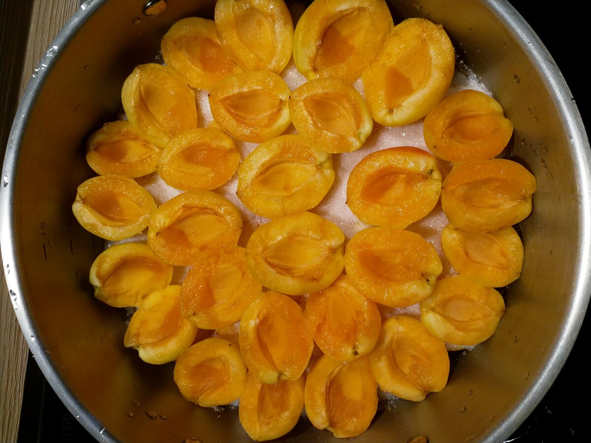 Всем привет. Сезон косточковых в самом разгаре, пора задуматься о зимних заготовках. Я решила сделать абрикосовый конфитюр. Его можно есть как самостоятельный десерт к чаю или в качестве топпингов к кексам, блинам и т.д. Выставляю на ваш суд рецепт Ингредиенты: Абрикосы - 2 кг (вес без косточек) Сахар- 2 кг Сок лимона - 100 г Приготовление: Хорошо промываем абрикосы, отделяем их от косточек. Выкладываем в кастрюлю слоями абрикосы и каждый слой пересыпаем сахаром. Когда выложите последний слой и пересыпите сахаром, полейте сверху лимонным соком. Оставляем настаиваться в районе 12 часов. За это время абрикосы выделят сок. Если выделилось очень много сока, то часть сливаем, в противном случае конфитюр получится жидким. Все перемешиваем и ставим на медленный огонь. Периодически помешиваем, чтобы не подгорело. Ждём пока растворится сахар. Затем выключаем плиту и оставляем наш будущий конфитюр остывать. Через несколько часов, когда сироп остынет, опять ставим на медленный огонь и варим у