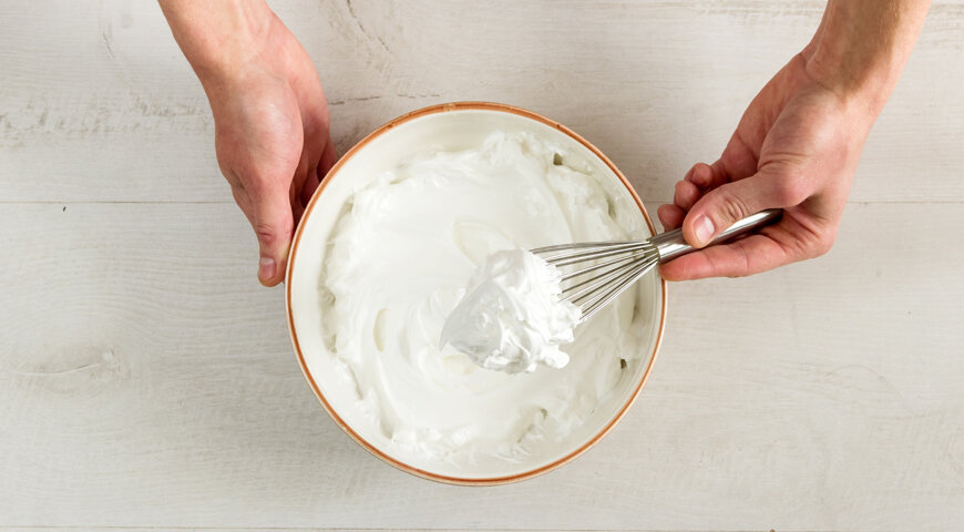 428 ккал Источник "Школа гастронома" ИНГРЕДИЕНТЫ ПОШАГОВЫЙ РЕЦЕПТ ПРИГОТОВЛЕНИЯ Шаг 1 Белки взбивать миксером, до однорожности и пышной пены. Порциями, понемногу добавить просеянную сахарную пудру, не прекращая взбивать, 10 мин. Работать лучше всего на средних оборотах. В самом конце добавить просеянный крахмал и кислоту. Можно заменить её лимонным соком - буквально несколькими каплями. Некоторые предпочитают использовать уксус. Вся вышеперечисленная кислота стабилизирует белки, а лимонная кислота придаст ещё и еле уловимую приятную кислинку. Шаг 2 Шаг 3 Шаг 4 Сливки взбить в пышную блестящую пену. Шаг 5 Банан очистить от к
