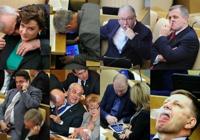 Недавно Путин сказал что руководители госкомпаний и корпораций не могут получать мало денег, ибо нефиг плебеям, точнее они высококлассные специалисты и бла...бла...бла. Несмотря что они особо вообще нифига не делают, ряхи шире сковороды. Но да ладно, есть еще такая категория милионеров, которая трудится изо дня в день, не покладая рук и мозгов. Все думают как нам обустроить россию-матушку. Не берегут себя, и это не футболисты сборной россии. Это ДУМАтели Жить им несладко, зарплата маленькая, но работать приходится, даже ночью , устают. Но когда принимается очередной закон, направленный на "улучшение" нашей, и без того сказочной, жизни, то в пору порадоваться и умеренно проявить эмоции В депутаты не берут кого попало, нужно иметь соответственное образование, развитую эрудицию, быть специалистом в своей области (хз какой, но это не важно), быть эффективным управленцем и тд. А у этой девушки, выше, отчетливо видно ДВА высший образования и, думаю, не менее широкий кругозор. Лучше всего
