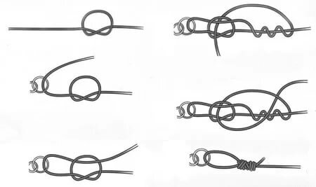 Прежде чем забросить воблер, нужно его правильно привязать к леске. Задача это не такая элементарная, как кажется. Дело в том, что некоторые воблеры (особенно небольшого размера) достаточно тонко отбалансированы – и любой "лишний" элемент (стальной поводок и даже грубая застежка) может нарушить правильный баланс и ухудшить игру приманки. К счастью, у большинства средних и крупных воблеров этот вопрос не критичен. Хотя и здесь грубый тяжелый поводок может мешать ловле – например, создавая ненужное провисание лески на паузах. Поэтому чем короче и легче поводок для воблера – тем лучше для игры и проводки. Но и про размер добычи стоит помнить – поэтому лучшим вариантом всегда будет компромисс. Значит, для каждого воблера желательно подобрать свой оптимальный вариант для привязывания к леске. Производителем настоятельно рекомендуется использовать не затягивающийся, а свободный узел-петлю, который меньше сковывает игру воблера. Для большей наглядности показана последовательность вязания