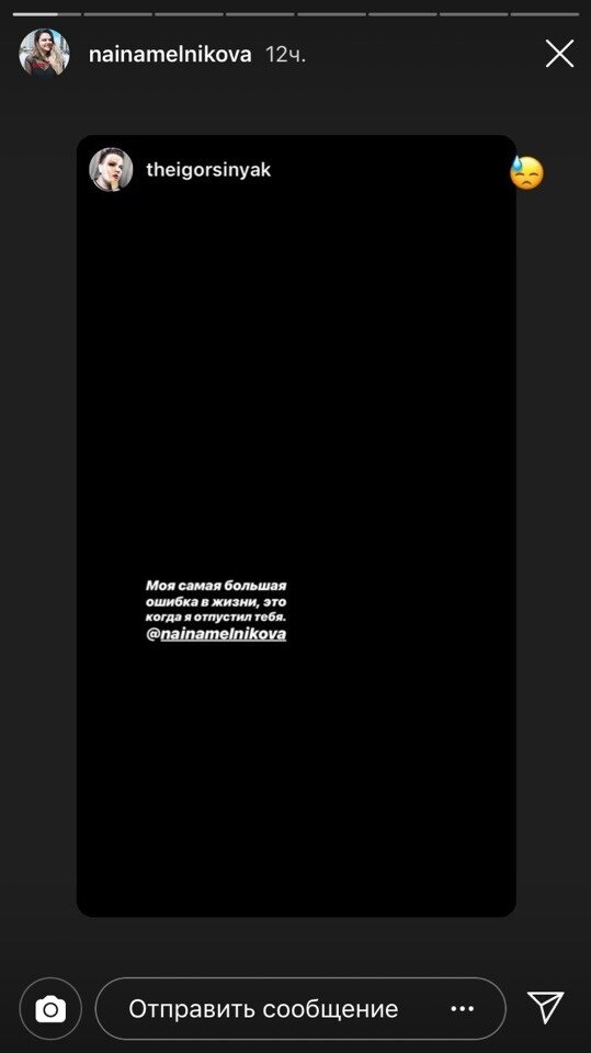 Наина также выложила Instastory, в котором заявила о «непростом разговоре» с Игорем. Видимо, они соскучились.