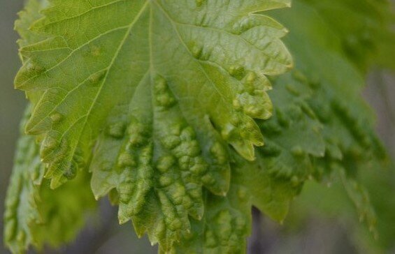 Если на листьях винограда появились пупырышки,вздутия. Значит мелкий вредитель попал на растение. Этот маленький жучок называется Войлочный зудень. Он прикрепляется к нижней части листа, и начинает тянуть из него сок. По научному эта болезнь винограда называется фитоптус Меры борьбы с войлочным зуднем народными средствами. 1. Настойка луковой шелухи. Луковую шелуху заливаем водой и даем настояться 3 дня. Этим раствором опрыскиваем листву и древесную часть. 2. В качестве профилактике можно использовать известь 5%. Также после сбора урожая нужно снять пораженную листву винограда и с земли и сжечь. 3. Настой из бархатцев. Пол ведра сушеных бархатцев(цветов) залить 10 литрами теплой воды и настаивать 2 дня. Перед тем как опрыскивать добавляем еще 50 грамм хозяйственного мыла . Опрыскивание производим в вечернее время. Народные средства действуют эффективно только при небольшом распространении клеща. При сильном поражении эффективно будет использовать опрыскивание химик