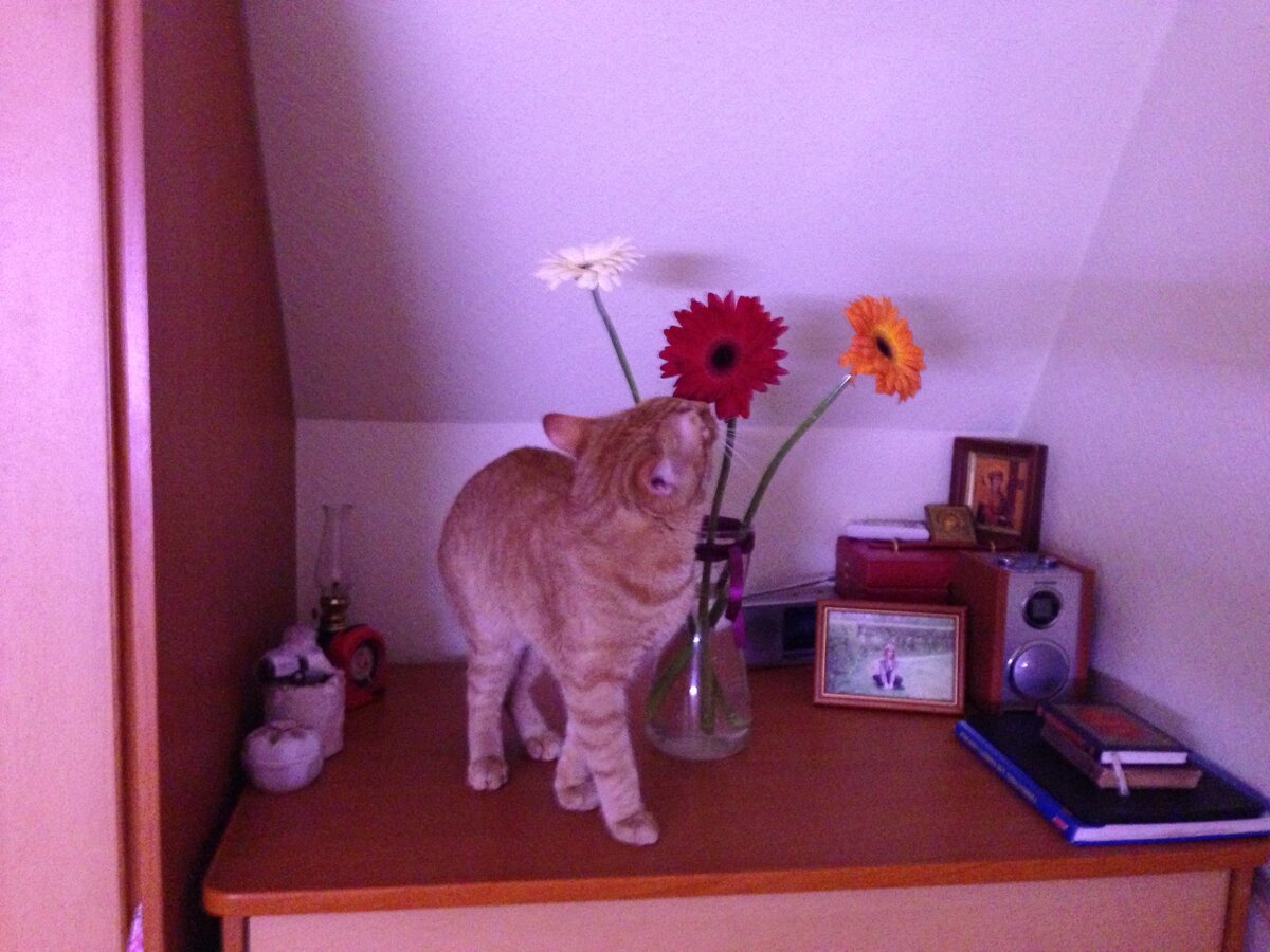 Была тут история – разбилась ваза. Ну то есть, она стояла, ничего ей не мешало, никого рядом не было, а она взяла и шмякнулась на пол, да и разлетелась на кусочки. Все бы ничего, но в ней были цветочки и вода. Ну, цветочки – это ерунда, тут же высохли, мы их на мелкие части разгрызли, даже пожевали немного. Дрянь жуткая, меня потом весь день тошнило. На кровати лежу – чувствую сил нет, подкатывает. Почистишь желудок, уходишь на другую кровать – опять страдания накатывают. Ужас. Пол дома обошел, пока желудок успокоился. А воплей потом было! Но сначала были вопли из-за самой вазы и воды. Что за идиоты, ставили бы свои веники сразу без воды – не пришлось бы ее с пола собирать. И вообще, что за манера ставить такие мерзкие несъедобные растения в доме! Это же потравиться можно! И так и получалось, и не один раз! Если после этого вазы на пол летают, так это правильно! Куда им еще летать – на потолок, что ли? А все – абсолютно все претензии к котам! Жуткая несправедливость, маман сама гово