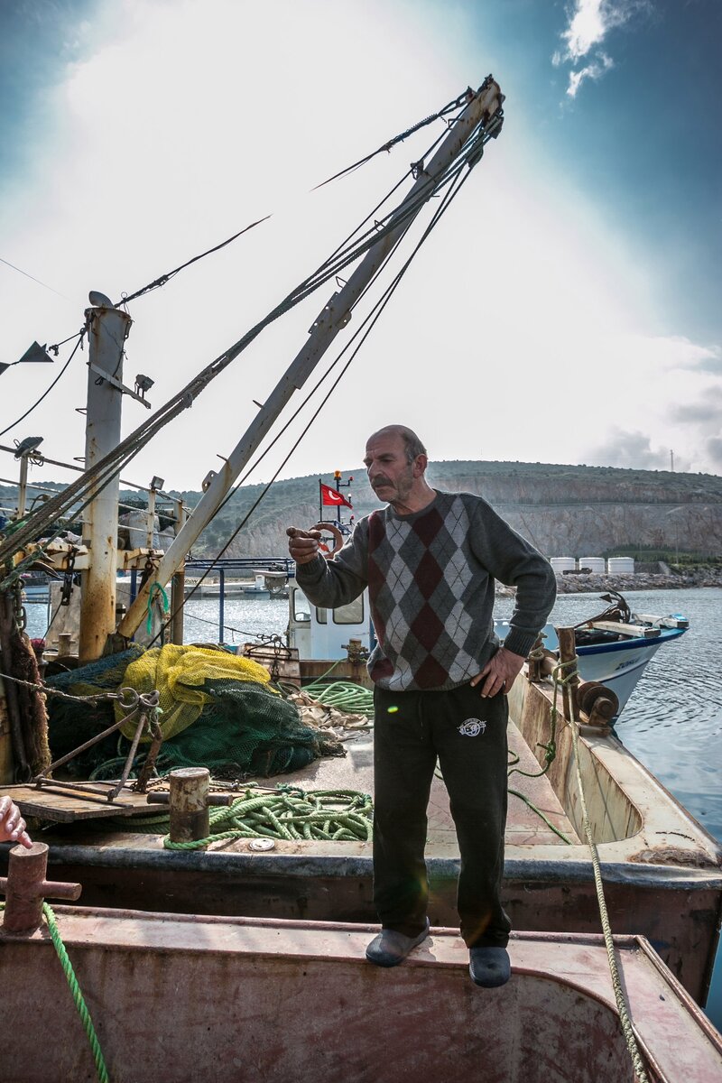 Меж тем, у нас гости, пришли Али и Сулейман, балыкчи. Я угостил рыбаков греческой узо, сидели, беседовали. Чуть позже, с грохотом горного обвала, по камням к нам обрушился Гера. В синих пенковых калошах и синей же шапке-пидорке смотрится более чем оригинально. :) Беседа из светской стала шумно-дружеской, узо полилась рекой. Гера реально умеет найти подход к людям. Черный Али по английски не шпрейхает, потягивает узо и молчит. Зато старик Сулейман захмелел и разговорился. Оказывается, он пламенный ленинец. Коммунист. Утверждает, что в Турции сейчас фашизм. Машет руками и горячится. Упрекает нас за предательство Революции.