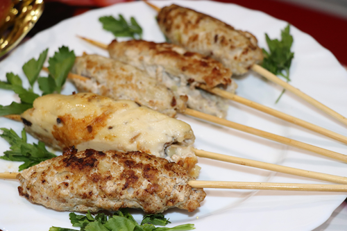Очень необычное, но вкусное блюдо можно приготовить из фарша. Это угощение имеет восточные корни и преимущественно готовится из рубленого мяса. Но, люля-кебаб из фарша получится не менее аппетитным и сочным. Весь секрет в том, что фарш нужно использовать домашний, чтобы контролировать консистенцию готовой мясной смеси. При необходимости можно добавить чуть больше лука. Ингредиенты: Процесс приготовления: Для начала, следует все ингредиенты подготовить на столе. Так будет проще и быстрее сделать наше блюдо. Мясо перекручиваем через мясорубку. Молодой лук шинкуем ножом на небольшие кусочки. Перекладываем его в чашу с фаршем. Добавляем туда же соль и специи. Обычно бывает достаточно черного молотого перца и сушеного чеснока. Но, можно корректировать специи под свой вкус. Тщательно перемешиваем фарш руками. Следует слегка прижать массу, чтобы лук выделил сок. Подготовленный фарш ставим в холодильник на час. Затем, вытаскиваем и еще раз перемешиваем. Берем деревянные шпажки. Аккуратно, отщи
