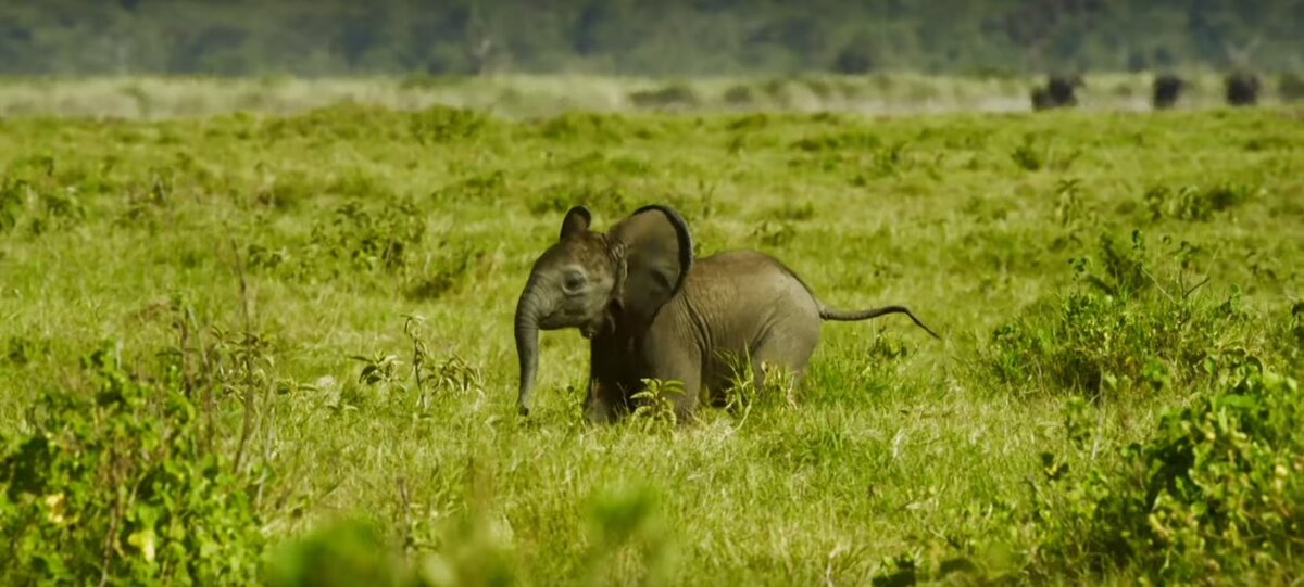 Солнечный день. Ничего не нарушает спокойствие и умиротворение, наш маленький герой - еще совсем юный слоненок, самостоятельно исследует растительную фауну, наслаждаясь ее видом. Его окружает зеленая трава, птицы и солнце, он счастлив. Но откуда он мог знать, что неподалеку в зарослях поджидает удобный момент для атаки голодные львы? Почуяв что-то неладное, слоненок зазвал своих родителей, которые были недалеко, и побежал к ним. Наш горой не ошибся, недалеко, в ожидании находились несколько львов, жаждущих легкой наживы. Слоненок успел спрятаться под ногами у взрослых слонов. Но голодные львы никуда не ушли, а наоборот, они кружили вокруг стада слонов, пытаясь найти удобный момент что бы напасть на нашего героя. Слоны всячески пытались отогнать львов, то ударами ногами, то громким звуком, но этого было мало. Львам нужна жертва. Один из взрослых слонов, набрался смелости и самостоятельно решил справиться со львами. Он не давал им шанса укусить себя. Львы поняли, что сегодня им не по