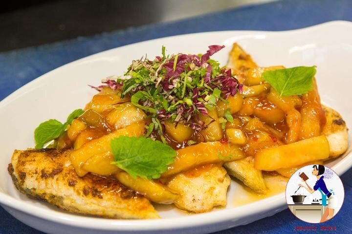 Osiyocha tarzda tayyorlangan baliq dengiz mahsulotlarini sevib iste'mol qiluvchi kishilar uchun ayni muddao bo'lishi turgan gap. Bekajonlar dam olish kunlarida oila a'zolaringizni hursand qiluvchi va ko'ngilga juda ham manzur bo'luvchi taom retseptni taqdim etaman. Ushbu taomni sinab ko'rishni ortga tashlamang. Albatta sinab ko'ring! Kerakli masalliqlar: Tayyorlash usuli: 1. Birinchi navbatda baliqni tayyorlab oling. Baliq filesini diagonali bo'ylab bo'laklarga bo'ling. Sharob, tuz va murchda, 10-15 daqiqaga marinadlang. 2. Baliq bo'laklarini unga bulang. 3. Baliq bo'laklarini tovada, qizdirilgan saryog'da, har tomonlama qovuring. 4. Baliq bo'laklarini laganga suzib oling. 5. Baqlajonni qalinligi 2 sm, uzunligi 3sm hajmda to'rg'ang. Tovada tilla tusga kirgunga qadar qovuring. 6. Chili va tay souslarini qo'shing va aralashtiring. 7. Qaynab turgan sousga, doim aralashtirgan holda kraxmalni soling va qaynash darajasiga olib boring. 8. Tayyor baqlajonni baliq ustiga soling. Taomni maydala