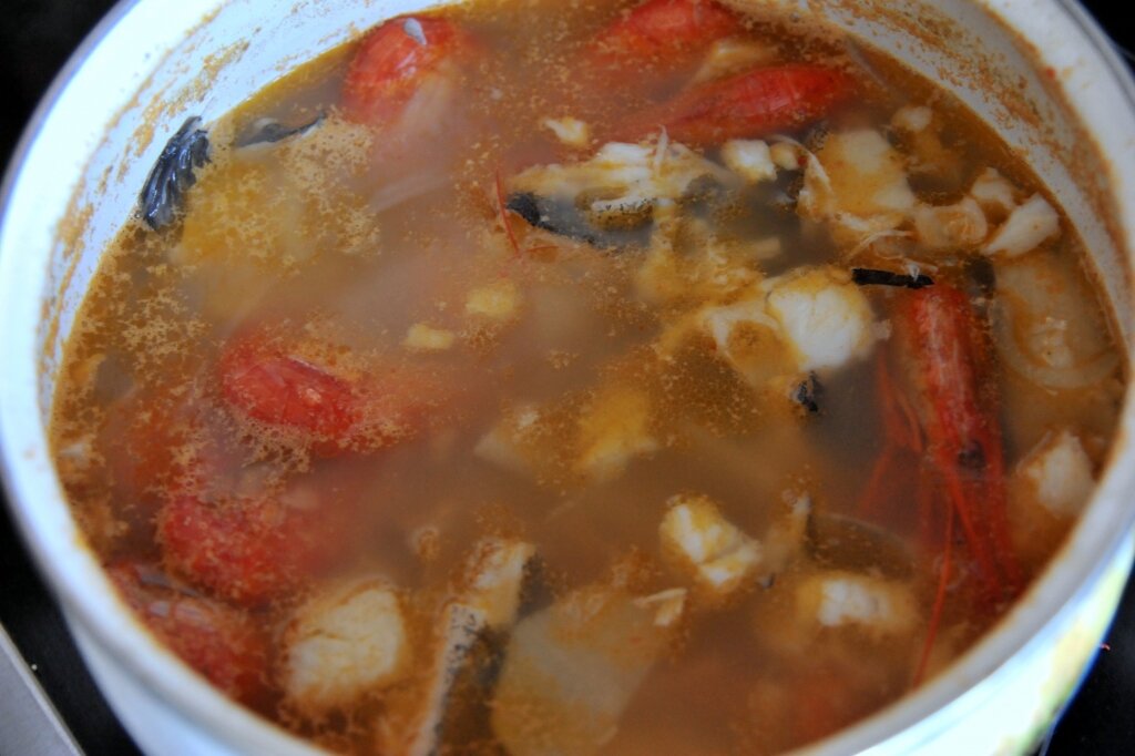Итак, сегодня расскажу как приготовить самый популярный, и не побоюсь этого слова, самый любимый сахалинцами корейский суп. Вариантов приготовления этого супа много. Он готовится и с морковью и без, с морской капустой и без неё, с перечной пастой или с соусом ким-чи. Но все рецепты объединяет одно-палтус и разнообразные морепродукты. Так же кто-то варит сначала овощной бульон и в него добавляют остальные ингридиенты, а кто наоборот, сначала варит бульон из палтуса. Причем на выходе всегда получается очень вкусный хельмунтан. ИНГРЕДИЕНТЫ: • репчатый лук — 2 луковицы • редька дайкон — 0,5 кг • морковь — 1 шт. • палтус — 0,4— 0,5 кг • креветки — 0,4 кг • краб — 0,3 кг. Краб для хельмунтана я считаю обязательным. Я предпочитаю волосатика в этот суп, но это не принципиально. • мидии, гребешок, трубач. На крайний случай можно заменить на морской коктейль. Но лучше всего свежие морепродукты. • морская капуста сушеная – несколько листиков • соль, черный перец, соевая паста кочудян– по