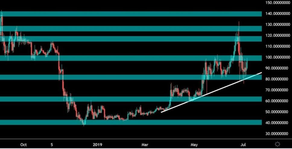 XMR / USD: недавнее поведение цены Ценовое движение Monero снижается с последних стадий июня, после того, как исчерпал значительную динамику роста. XMR / USD находится на стабильном пути восстановления в 2019 году. XMR подорожал с начала года на 200%, с минимумов от 43 до 131 доллара. Учитывая отмеченное похолодание в конце прошлого месяца, на момент написания статьи XMR выросло примерно на 93%. XMR / USD поддерживается восходящей линией тренда, которая действует с марта 2019 года. Каждый раз, когда цена вступает в контакт с поддержкой, она толкает XMR дальше на север, давая быкам необходимый импульс для роста. Дневной график XMR / USD. Формирование головы и плеч Ценовое действие, которое направляется на север, поддерживаемое ранее детализированной линией тренда, в некоторой степени формирует голову и плечи. До настоящего времени XMR / USD построил левое плечо и голову, а линия восходящего тренда выступает в качестве линии шеи. Последний виден на отметке в 80 долларов; Любая неудача в