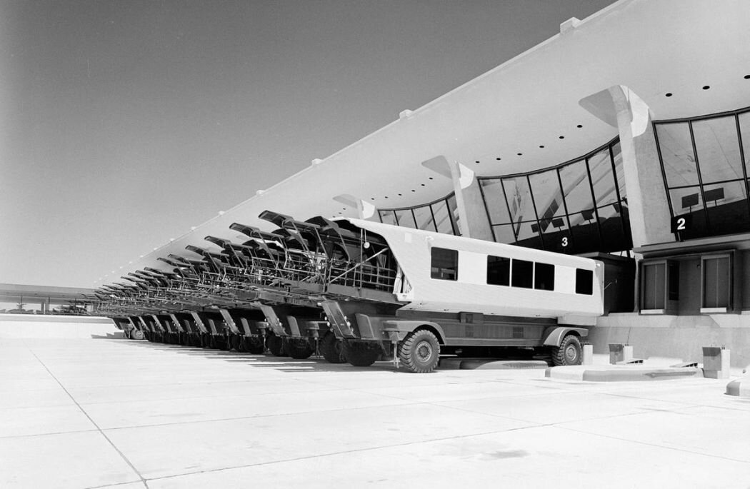 В 1958 году Чарльз и Рэй Имс разработали принципиально новую концепцию доставки пассажиров от аэропорта до самолетов. Они сделали это на примере международного аэропорта в Вашингтоне. Идея заключалась в следующем: как только пассажиры проходили паспортный контроль и досмотр, они попадали в так называемый «Мобильный салон» (Mobile Lounge), представляющий большое транспортное средство, которое транспортировало бы их от терминала до самолетов. Было разработано сразу две принципиально разных концепции мобильных салонов. Первый представлял собой двухосную тележку с двумя гидравлическими подъемниками, которые могли поднять пассажирский салон на высоту дверей самолета. Вторая концепция была попроще. В конструкции не использовали подъемные механизмы, вместо этого в передней части выдвигался специальный трап, по которому пассажиры, как по мостику, могли перейти из "автобуса" в салон самолета. К сожалению, инициатива не прижилась. Руководство аэропорта решило, что раскатывающие по территории аэ