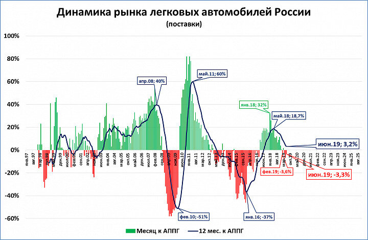 Ассоциация европейского бизнеса (АЕБ) выпустила пресс-релиз по итогам июня. У нас появилась возможность оценить рынок легковых автомобилей. Рынок легковых автомобилей в июне сократился на 3,3% Источники: Автостат, АЕБ, расчёты С. Блинова