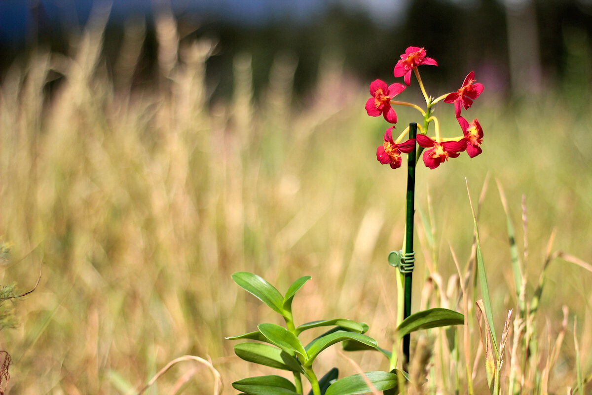 Update: благодаря Алине путешественница опознана - это эпидендрум )))) Даже я не могу опознать ее породу )) Все началось с того, что по дороге в Выборг мы заехали в строительный купить биогумуса и потратить бонусы с карты, пока не сгорели. Ну и, конечно, я заглянула на стойки с орхами взглянуть, что там есть. А там стояло это. Я такое первый раз видела ))) В принципе, это похоже на дендров, но я не уверена, что это - дендробиум. Я знаю только, что это орхидея ))) На этикетке было написано орхидный микс, ну как обычно. Это было крошечно и очаровательно, со своими птичками на маленьких цветах. Да и ростов было четыре штуки, в общем, выпустить горшок с этим из рук я уже не смогла, и так и поволокли мы вместе с биогумусом это к кассе. Существо было загружено в машину в подстаканник, где и отправилось с нами в Выборг. Фоточки существа я сделала по дороге на остановке у кафешки - мне показалось, поснимать орхидею на фоне русских природ будет интереснее, чем дома на окне ))) Создание доехало