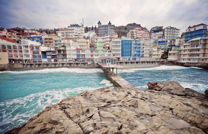 Любят в Крыму придумывать названия для достопримечательностей, сравнивая их с местами из других стран. Есть "Крымские Мальдивы ", "Крымская Швейцария ", "Крымская Япония". Но это ещё не все, есть и "Крымская Санта-Барбара " Утёс, на котором живут. Есть в Крыму недалеко от Партенита местечко под названием Утёс. Раньше был там закрытый лодочный кооператив, а позже предприимчивые люди построили отели. И благодаря их стилю и расположению получилось довольно живописно и немного по-европейски. Кто-то сравнивает это место с Италией. Но называют его Санта-Барбара. Почему Санта-Барбара? На фото вы видите много отелей, прижатых друг к другу, и среди них есть один под названием Санта-Барбара. Теперь весь этот райончик из отелей с пляжем назвали в его честь. Место это нетипично для Крыма. Потому популярно в Инстаграме. Некоторые считают что красивого тут нет. Бетон, бетон и ещё раз бетон. Я тоже больше люблю растительность. Но эта плотная цветная застройка на горе напоминает мне Италию.