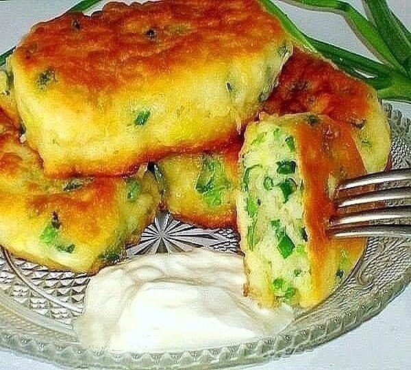 Ленивые пирожки с яйцом и зелёным луком за 10 минут