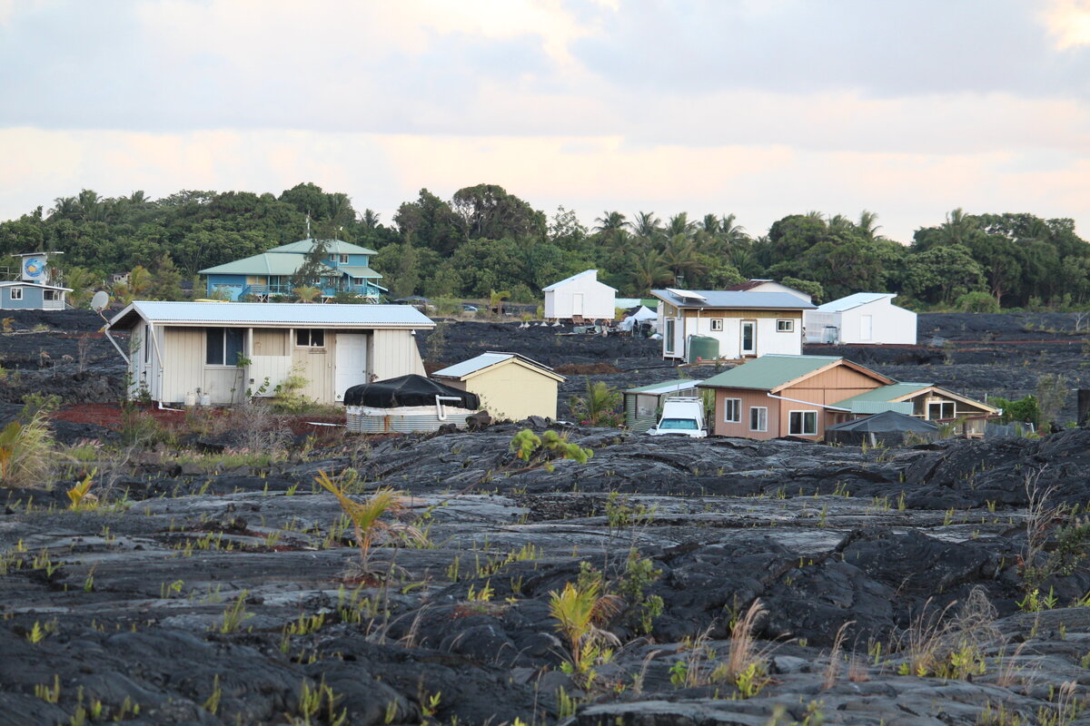 В начале мая 2018 года на острове Гавайи началось извержение вулкана Килауэа, лава уничтожила примерно 600 домой. Прошел год. Сам остров необыкновенно зеленый. После извержения вулкана лава завалила дороги, сползая к океану. Некоторые дороги уже расчистили. Лава сползла в океан. Кокосы положили просто на лаву. Чтобы выросли здесь пальмы. Люди отстроили дома. А вулкан продолжает дымиться (вертолетная экскурсия). И люди продолжают жить рядом... Как не боятся они жить рядом с вулканом...