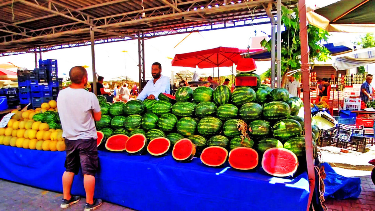 Базарные дни в Кемере понедельник и вторник. Это хорошие и большие базары и стоит их посетить. В июне 2019 оба базара проходили регулярно на площадке у отеля Viking Star Hotel 5* и рядом с Белой башней с часами - Cumhuriyet Meydanı - в центре Кемера ✦ ПОДРОБНЫЙ АВТОРСКИЙ ПУТЕВОДИТЕЛЬ НА ШОПИНГ В КЕМЕРЕ -ЗДЕСЬ ★ Продуктовый Базар Понедельник (Kemer Market Mondays Yeni Mahallesi) Овощи, фрукты, фермерские товары, рыба, мясо, конфеты и сладости, хозтовары, ковры, сувениры, специи. Здесь мы покупали соленые оливки, фермерский гранатовый концентрированный сок, сыры, фрукты. Чай советуем покупать в супермаркетах, здесь он дороже. Выездной базар каждый день меняет свою дислокацию, он проходит в поселках Бельдиби, Гёйнюк, Чамьюва, Текирова и самом городе Кемер. На нем большой выбор вещей, продуктов местного производства, а также сезонных фруктов. Цены здесь ниже, чем в сетевых магазинах. Цены продавцы выставляют как в евро, так и в долларах. Но выгоднее расплачиваться турецкими лирами. 🎥