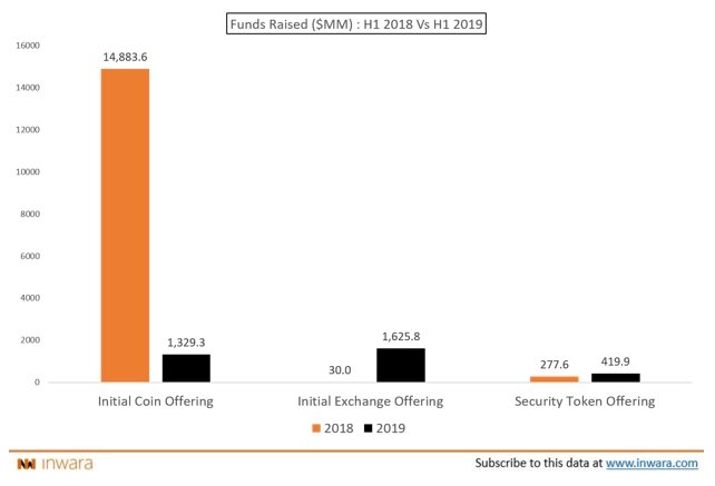 Первичные биржевые предложения (IEO) превзошли все другие механизмы по сбору средств, включая STO и ICO, в первом полугодии 2019 года, согласно отчету Inwara. Если вы еще близко не знакомы с тем, что представляют собой IEO, то у вас есть все основания думать о них как о неких централизованных аналогах ICO. В общих чертах IEO – это предложения токенов, запущенные исключительно на бирже(-ах) криптовалют от имени проекта, который стремится привлечь средства. В течение первого полугодия 2019 года IEO были невероятно успешными в сборе средств, обеспечивая немедленную прибыль для инвесторов, предлагая выход на биржу. Что немаловажно, они вновь разожгли интерес инвесторов к сегменту фандрайзинга на основе блокчейна. В первом полугодии 2019 года проекты IEO привлекли колоссальные 1,625 млрд долларов с ошеломляющим ростом более чем на 5 000% в годовом исчислении. Это напоминает времена расцвета ICO, и все желающие могут сразу же провести определенные сравнения на фоне появления нового инвестиц