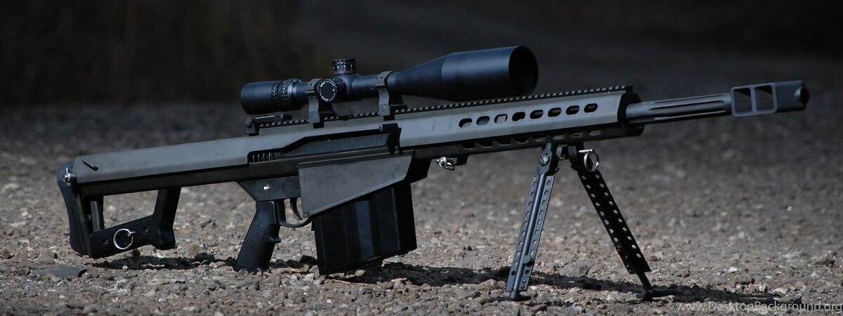 Винтовка Barrett M82 была разработана в 1982 году и принята на вооружение США в 1989 году и относится к особому классу (Как собственно и все остальные классы снайперских винтовок) "Антиматериальных" снайперских винтовок(Для уничтожения легко бронированной техники, и я знаю, что я капитан очевидность). Она рассчитана на мощные патроны 12,7х 99мм НАТО и способна поражать цели почти до 2 км. Весит эта бандурина около 16 кг, штатный магазин вмещает 5 патронов, расширенный 10. Для снижения отдачи используется фирменный дульный тормоз особой конструкции.