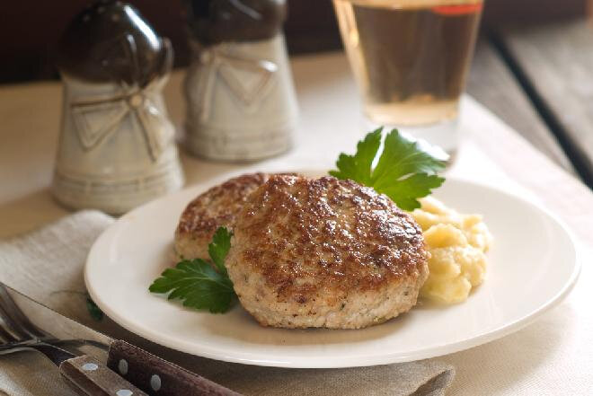2. Приправа по вкусу, сформируйте котлеты или две поменьше. Выпекать около 50 минут при температуре 200 градусов по Цельсию.