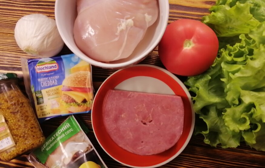 Если мне хочется приготовить перекус для всей семьи, я неизменно готовлю именно клаб сэндвичи. Они получаются вкусными и сытными – идеальный вариант для быстрого перекуса Ингредиенты На 2 порции: · тостовый хлеб: 6 шт.; · куриное филе: 1 шт.; · майонез: 2 ст. л.; · зернистая горчица: 1 ст. л.; · помидор: 1 шт.; · сладкий лук: ½ шт.; · сыр: 30 г; · ветчина: 40 г; · салат: 2 листка; · соль: по вкусу; · перец: по вкусу. Приготовление: Приготовление соуса предельно просто. Достаточно смешать майонез и горчицу. Курицу нарежьте на пласты небольшого размера, посолите их и поперчите. Обваляйте кусочки курицы в муке, остатки затем струсите. Обжаривайте курицу по 3-4 минуты до красивой золотистости. Филе нарежьте небольшими кусочками. Листья салата промойте и просушите бумажными полотенцами. Лук нарежьте тонкими полукольцами. Помидор нарежьте тонкими кружочками. Кусочки тостового хлеба поджарьте на сковороде до легкой золотистости. На каждый сэндвич потребуется 3 к