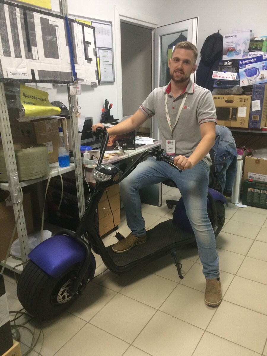 Всем привет. Сегодня довелось прокатиться на электроскутаре, и это было непередаваемо. Как я уже говорил не один раз я работаю в Торговом центре, и среди моих коллег очень много тех, кто не стоит на месте и не ждет чудо. Один из моих коллег недавно открыл Бюргерную, и на удивление готовит очень вкусные бюргеры. Второй из моих коллег (Сергей) вместе с выше указанным, сейчас собираются запускать прокат электроскутеров. С момента возникновения идеи по поводу скутеров, и до сегодняшнего момента Сергей с многими мыслями со мной делился. Заказывал он полтора месяца назад у китайского поставщика через Alibaba, в отличие от AliExpress, здесь оптовая площадка и поэтому цены довольно привлекательны. Заказал себе он на первую пробу 6 скутеров, отдал он за все включая доставку и растаможку 5000$. Вроде бы адекватно, но увидев конструкцию вживую и прокатившись возникает вопрос, почему блин наши собрать не могут? Ведь конструкции проще не куда. И вот прошло полтора месяца и Сергей приходит с
