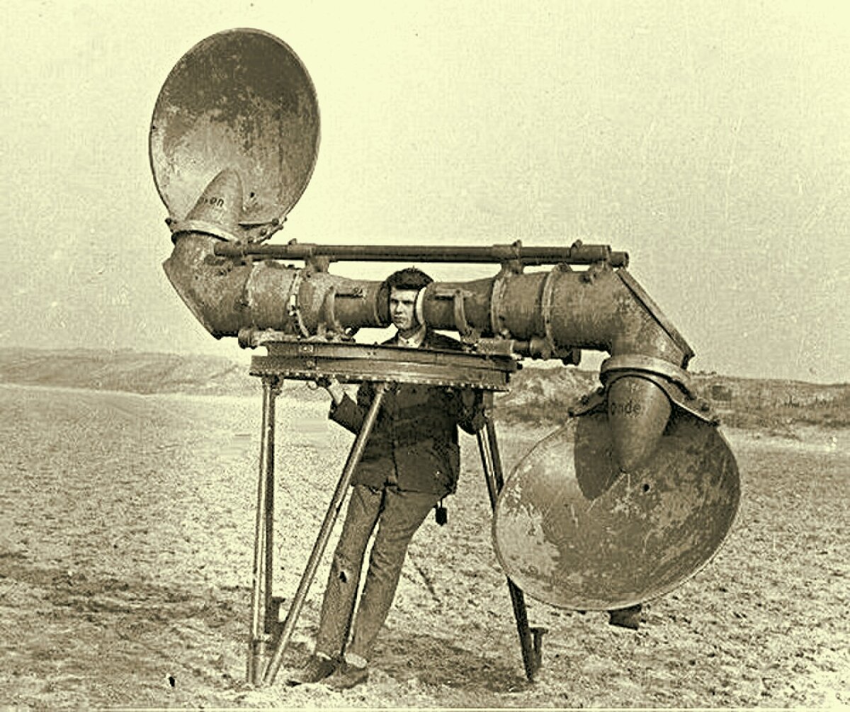 СМЕРТЬ И ХАОС Немецкая авиация в Великую Отечественную - коварная сила прижимавшая наши войска к земле. Из за налетов вражеских бомбардировщиков ни войска, ни снабжение не могли перемещаться. Ни организовать оборону, ни подготовить атаку. Налетали мессиры и бомбили. Смерть. Хаос. Непонятно, что делать дальше. ВНЕЗАПНОСТЬ И самое страшное, что было в этих налетах - внезапность. Когда в небе замечали приближение черных точек, то истошно кричали: -ВОЗДУХ!!!!!!!!! Но было уже поздно. Через несколько минут всё было в огне и обоженных трупах. ЧЕЛОВЕК-ЛОКАТОР Методов своевременного предупреждения о налёте авиации ещё не были разработаны, но что-то делать было необходимо. Тогда и появились первые люди-локаторы. С помощью нехитрой конструкции - состоящей из гигантских конусов, они вслушивались в окружающую тишину. От их способности распознать звуки приближающихся бомбардировщиков зависели судьбы сотен тысяч людей, десятков тысяч единиц боевой техники и успех множества войсковых операций.