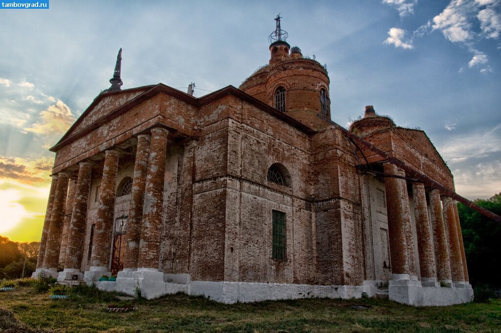 Возвращаясь из Вернадовки, решил поехать не по обычной трассе, а другой дорогой, которая проходит по нескольким сёлам. Асфальт там, мягко говоря, не лучшего качества, а на достаточно большом участке дороги его нет совсем. Но все неудобства с лихвой перекрыло то, что мы увидели, проезжая через село Гагарино 1-ое Пичаевского района. Огромный храм как-то неожиданно и сразу вывалился из-за деревьев. Я даже и подумать не мог, что в селе, в которое и добраться-то проблемно, может быть что-то подобное - это явно один из крупнейших храмов области. Разумеется, остановился поснимать, а по возвращении домой узнал кое-что о его истории.