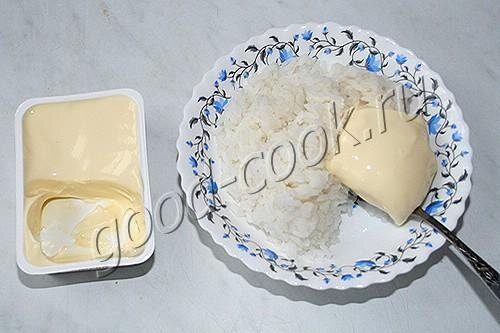 Внимание! Если будут использоваться консервированные кальмары, то перед тем, как начать готовить этот салат, обязательно попробуйте их на вкус. Бывает, что консервы имеют приятный запах, но при разжёвывании кальмаров ощущается запах тухлости. Это означает, что консервы были приготовлены из протухших кальмаров. Поэтому при покупке обращайте внимание на место производства консервов. Необходимо, чтобы завод-изготовитель располагался в городе на берегу моря, а не в центральной части страны. СОСТАВ 50г сухого риса, 10