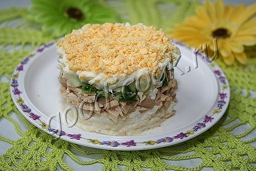Вместо консервированных кальмаров можно использовать варёные, от этого салат будет ещё более нежным.