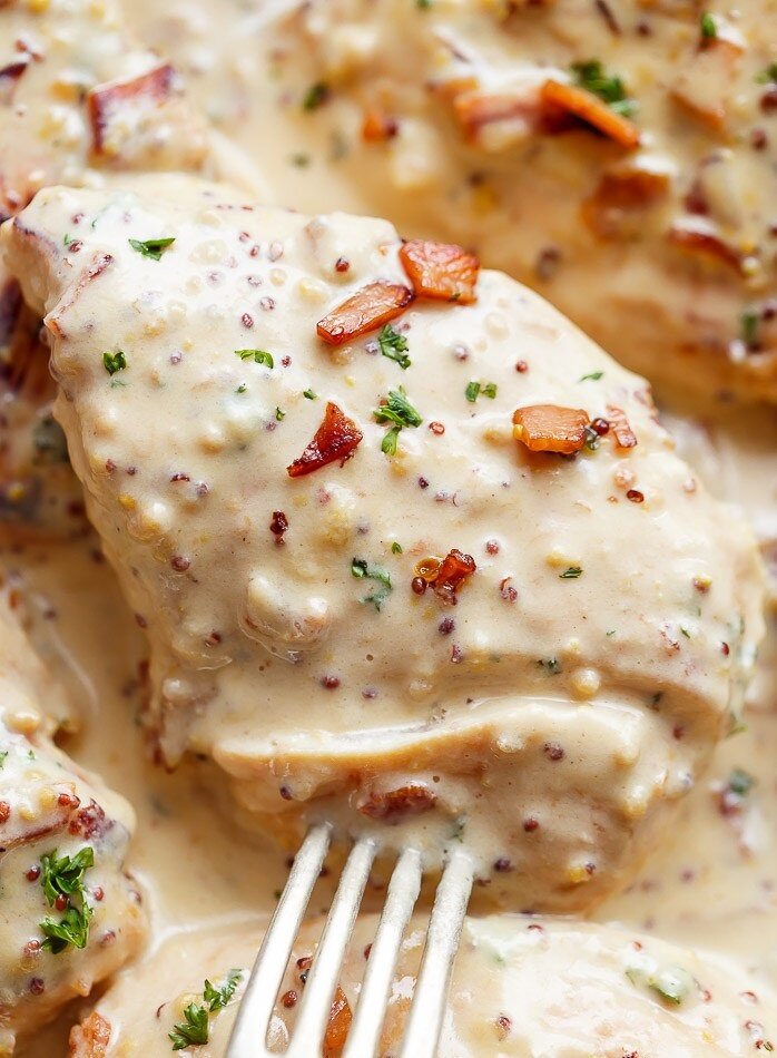 Восхитительная Сливочно-медовая курица с горчицей с хрустящими кусочками бекона станет вашим новым любимым ужином . Ингредиенты инструкции