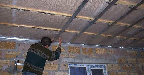 После выполнения предварительного этапа фиксируют пароизоляцию рейками, которые одновременно служат обрешеткой для гипсокартона или вагонки. Обрешетка выполняет функцию создания пространства для вентиляции между подшивкой и изоляцией.