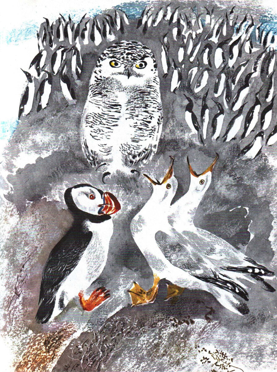 Вчера исполнилось 85 лет со дня рождения Никиты Чарушина, замечательного советского анималиста, одного из лучших, на мой взгляд, за всю историю иллюстрированной книги. (Ну даже если я и преувеличиваю, то самую-самую малость). В честь этого события захотелось показать какую-нибудь проиллюстрированную им историю и я выбрала "С севера на юг" Николая Сладкова, книгу-путешествие по самым разным уголкам планеты - тундрам и пустыням, ледникам и степям. Пока искала нужную книгу, обнаружила, что у меня дома довольно много книг с иллюстрациями Никиты Чарушина. При том, не могу сказать, что истории о животных и натуралистические зарисовки - мои любимые жанры, вовсе нет. Но всякий раз, как мне в руки попадает книжка, проиллюстрированная Чарушиным-младшим, я ее покупаю. Это, видимо, происходит неосознанно. То есть буквально, часть мозга, отвечающая за рациональное поведение, временно перестает функционировать. Наверное, так происходит потому, что от этих иллюстраций веет какой-то абсолютной свобо