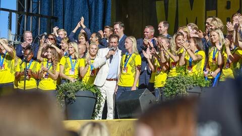 Вернувшись на шведскую землю, было около 25 000 фанатов, которые хотели взглянуть на бронзовых героев. Сегодня сине-желтый был провозглашен в Гетаплатсен в Гетеборге.