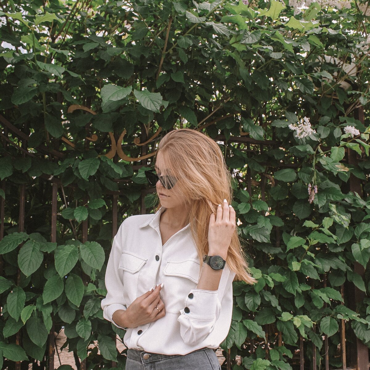 Моя извечная проблема - поиск белой рубашки. Я сделала несколько попыток, заказывала белые рубашки, но все было не то. А тут вроде все как надо! Мои параметры - 80х66х91, рост - 168 см. Я заказала стандартный для себя размер S. Модель рубашки довольно свободная, но мне это по нарву. Единственное, на мой рост рукава коротковаты. Но я уже привыкла, просто закатываю их и все. Смотрится даже лучше. Рубашка пришла в индивидуальном пакете. С внутренней стороны на спинке был вшитый лейбл, на котором болтались картонные бирки магазина. Там можно найти инструкцию по уходу. Этикетки с составом не было. Но тут и так понятно, что это полиэстер. Хотя вполне себе носибельный: к телу не липнет, не шуршит, мягкий и податливый. Но просвечивает. Тут в помощь телесное белье. Из бонусов - крутые карманы на груди, черные матовые пуговицы яйцеобразной формы и черные строчки, делающие рубашку такой выразительной. Пошив не идеален. Я бы сказала, что 50 на 50. Строчки не так уж прям по линейке, да и хвостики