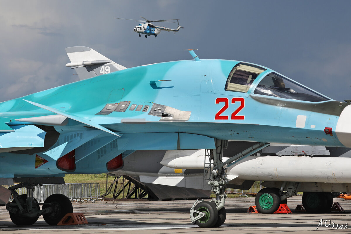 Так получилось, что в армии я не служил, извините, но имею две военные специальности. Сразу после школы окончил курс «Оператор радиолокационных станций» в ДОСААФ, а в Университете на Военной кафедре получил твёрдую тройку и стал по бумажке командиром мотострелкового взвода. У военных тройка – это удовлетворительно, ещё есть неудовлетворительно. Кому в дипломе нужна была пятёрка, отправились красить забор «любимой» кафедры и впоследствии получили красные дипломы, стали докторами наук, профессорами. Я выбрал другой путь… Мой интерес к армейской тематике – а как без этого в наше неспокойное время! – не смогла отбить даже Военная кафедра. Когда стало известно, что в Пермь на фестиваль «Крылья Пармы» прибудут истребитель-бомбардировщик Су-24, истребитель-перехватчик МиГ-31БМ, вертолет Ми-8-МТВ-5, а самое главное, истребитель Су-34, я решил обязательно побывать на празднике. Сказано – сделано, организаторы пошли на встречу и предоставили аккредитацию. Большое спасибо! Су-34 «Утенок» – росси