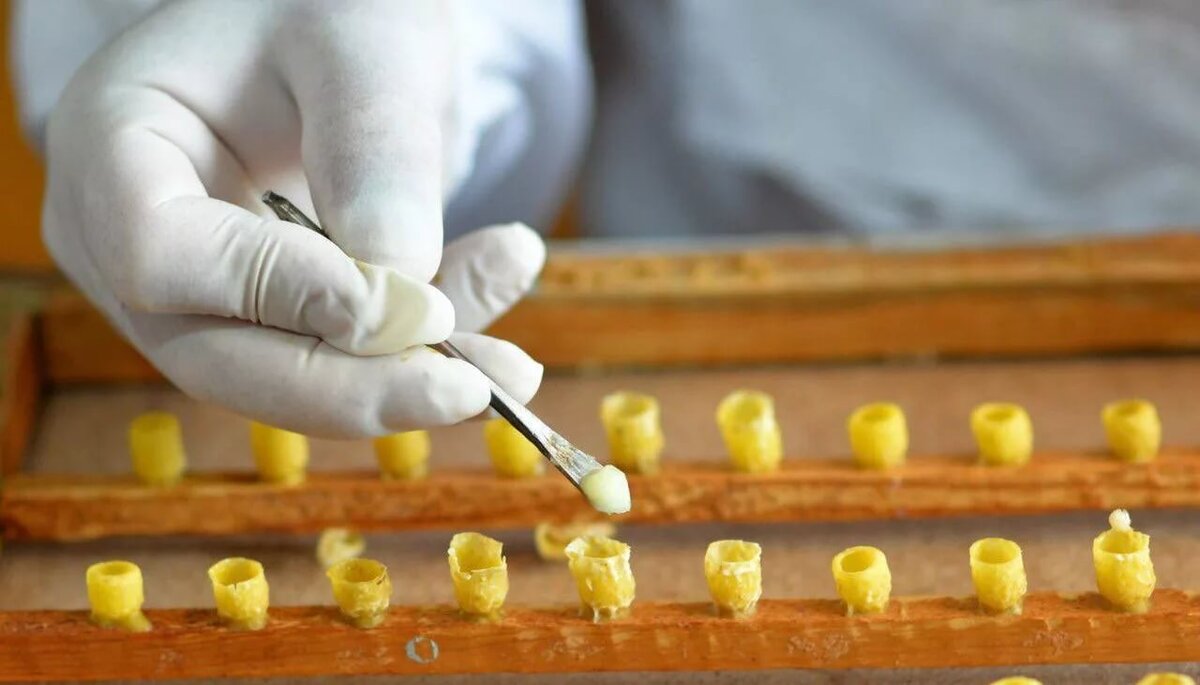 Для специализированного сбора королевского желе изготавливают специальные рамки с перегородками, на которых установлены небольшие стеклянные бочонки (матки). Пчелы заливают в такой бочонок около 0,3 мг вещества, укладывают в него личинку и закрывают матку восковой пробкой. Когда все бочонки заполнены, маточные рамки достаются из улья и вещество из них фасуется в стерильные шприцы.