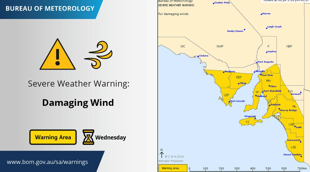 Самая разрушительная зимняя погода обрушится на обширную полосу Южной Австралии в среду днем, что приведет к сильным ветрам, огромным морским волнениям и потенциальным наводнениям. Бюро метеорологии прогнозирует порывы ветра до 125 км / ч вдоль прибрежных районов, а в среду вода поднимется до 5 м, а в пятницу достигнет уже 8 м. Центры управления SES находятся в режиме ожидания, поскольку добровольцы готовятся к поистине ужасным погодным условиям. Ожидается небольшой дождь с локальными сильными падениями давления, сопровождающими фронт шторма. Возможность внезапного наводнения побудила SES предостеречь людей от попадания в любую движущуюся воду, вызванную штормовым фронтом. Жестокий характер погоды является результатом перемещения воздуха из Антарктики через Южный океан. Метеоролог метеорологического канала Sky News Том Сондерс назвал ожидающуюся погоду «полярным импульсом». Полезные ссылки