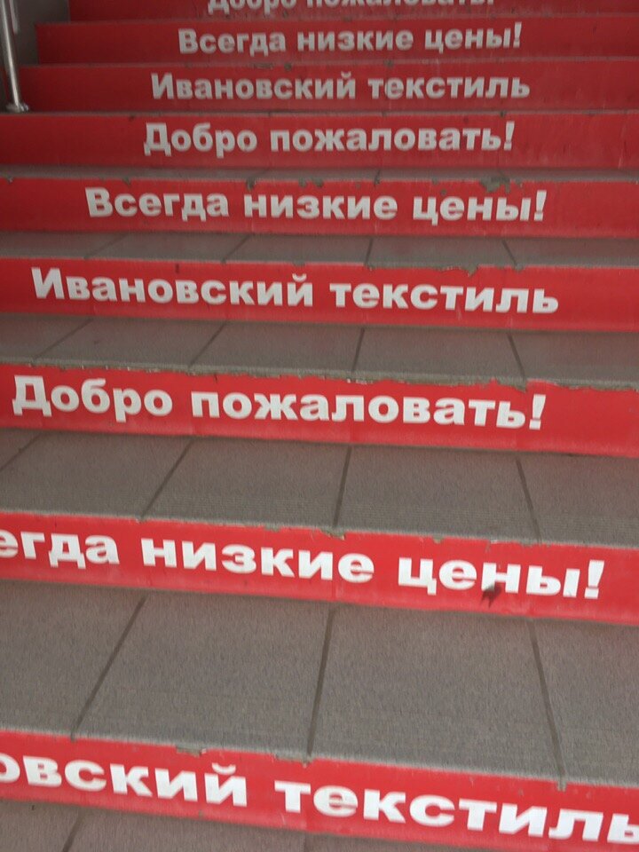 Я изначально относилась к Ивановскому текстилю как к покупке, которая не так уж и необходима. Если в самом городе можно дешево купить какие-то товары, то еще не так обидно, если качество окажется не самым лучшим, но на выездных ярмарках ценник как-то сильно меняется. Сходить на выставку Ивановского текстиля - это желание моих домашних, а я уже так, за компанию. От города, где я сейчас нахожусь, до Иваново более 3000 километров, поэтому особой популярности у данного текстиля не было до определенного момента. Потом появилась первая выездная ярмарка, за ней вторая, третья, а недавно и вовсе открыли постоянный магазин, где можно приобрести и комплекты постельного белья, и полотенца, и домашнюю одежду и прочее-прочее. Изначально мы побывали на ярмарке, но там уже совсем выбора не было никакого - точка буквально метр на метр, поэтому и поместилось чуть-чуть. А позже уже отправились и в магазин. Учитывая, какие надпись встречают на лестнице, неудивительно, что возникает желание зайти: Словос