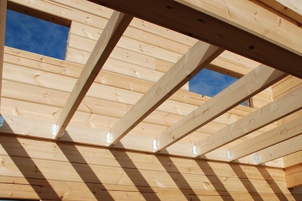 -возможность монтажа собственными силами людей без привлечения спецтехники (подьемных кранов) -легкость конструкции, и соответственно снижение нагрузки на стены и фундамент (без конструкции пола вес современного деревянного перекрытия - менее 100кг/м2) -достаточная прогибная жесткость (современные требования к прогибам перекрытий-1/200 длины пролета, и современные конструктивные решения деревянных перекрытий с "запасом" эти требования выполняют) -древесина - самый низкорадиоактивный материал, радиоактивтивность древесины в десятки(а то и сотни раз) ниже радиоактивности каменных и бетонных материалов. -теплоизоляция-возможность закладки теплоизоляции прямо в конструкцию перекрытия, и как следствие отсутствие, либо существенное уменьшение ее толщины и снижение высоты перекрытия -также в некоторых районах и некоторых случаях древесина самый доступный и дешевый материал. -возможность применения с любыми стенами, хоть каменными, хоть деревянными, хоть с низкопрочным газосиликатом малой пл