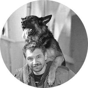 Это тоже абсолютно типичная история. Охранявший стройку ЧОП завел себе в качестве сторожевой собаки, а точнее лающей сигнализации, кобеля восточноевропейской овчарки. Потом работы на стройке закончились, вместе с ними закончился и контракт у ЧОПа, все уехали, а собаку бросили. Все это время пес жил на куче бетонных блоков на четырехметровой цепи, а из имущества у него был старый вонючий ошейник, который он до сих пор всюду таскает за собой в зубах и никому не отдает. Больше всего он похож не на Мухтара из старого советского фильма, а на старую, битую жизнью дворнягу, худой, с обвисшими от неправильного выращивания ушами. Сейчас он сидит у нас и ждет нового хозяина, охраняет свой ошейник, ну а мы потихоньку с ним работаем и приводим в чувство.