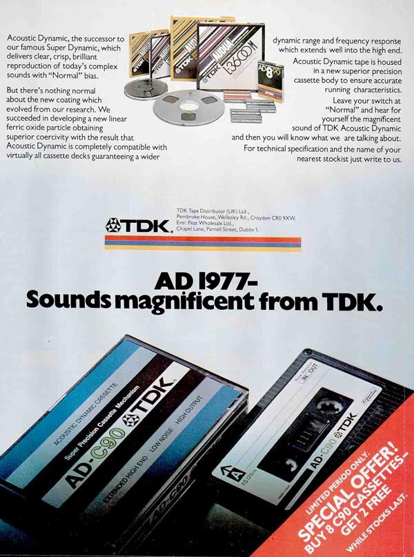 Все мы хорошо знаем массовую кассету TDK D, бестселлер всех времен и народов. А вот следующая модель в линейке – AD (Acoustic Dynamic) не так часто попадалась нам на глаза. AD впервые появилась в 1977 году, эволюционировав из кассеты SD (Super Dynamic). Эта кассета, как мне кажется, во многом недооценена из-за своего положения в модельном ряду: A->D->AD->AD-X->AR->AR-X. C одной стороны, она находится в начале цепочки, там где безгранично властвует D, с другой – она далеко от топовых суперферрумов AR-X и, по всей видимости, не так хороша. Однако, на самом деле все обстоит совсем не так плохо. AD по формуле куда ближе к AR, чем к D, и я бы её скорее причислил к «начальным высококачественным» кассетам, чем к обычным массовым. Эта кассета для тех, кому нужно больше качества, чем предлагают массовые модели, но хочется остаться в I типе и не потратить слишком много. Сегодня у меня для вас три поколения AD – 1982, 1985 и 1988 годов. Традиционно эти кассеты имеют более качественное оформлени